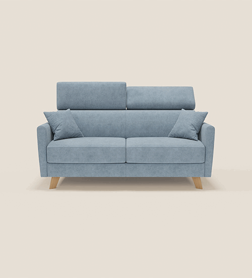 Canapé 3 places - pieds hauts et têtières inclinables en microfibre imperméable T11 bleu canard