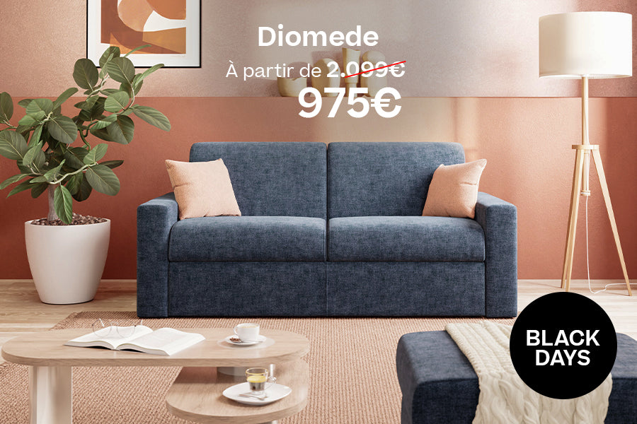 Canapé avec pouf extractible en tissu flamme effet coton impermeabile T19 orange