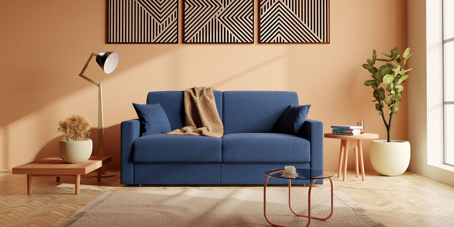 Canapé panoramique avec pouf extractible et dossiers amovibles en tissu doux imperméable T02 bleu canard