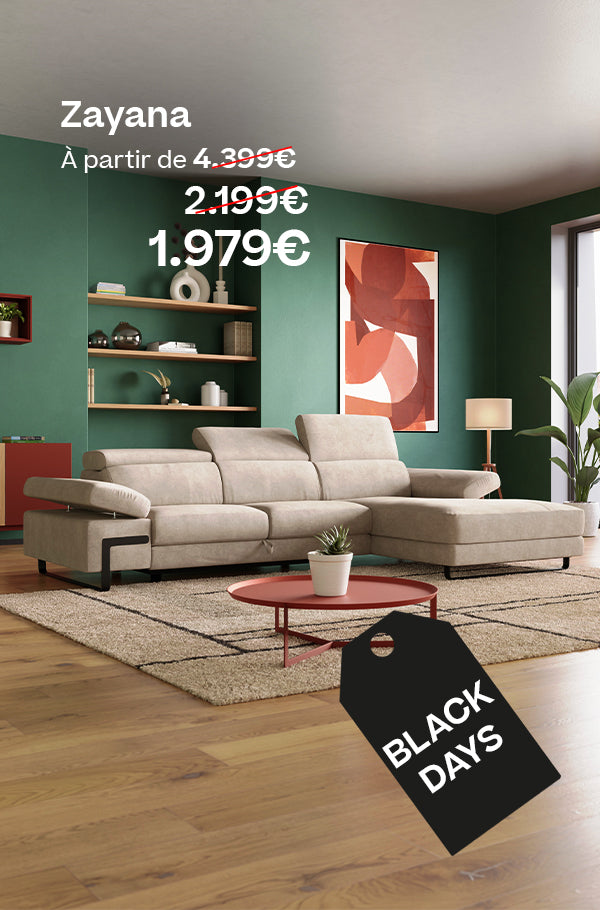 Canapé avec méridienne - pieds hauts et têtières inclinables en microfibre imperméable T11 gris