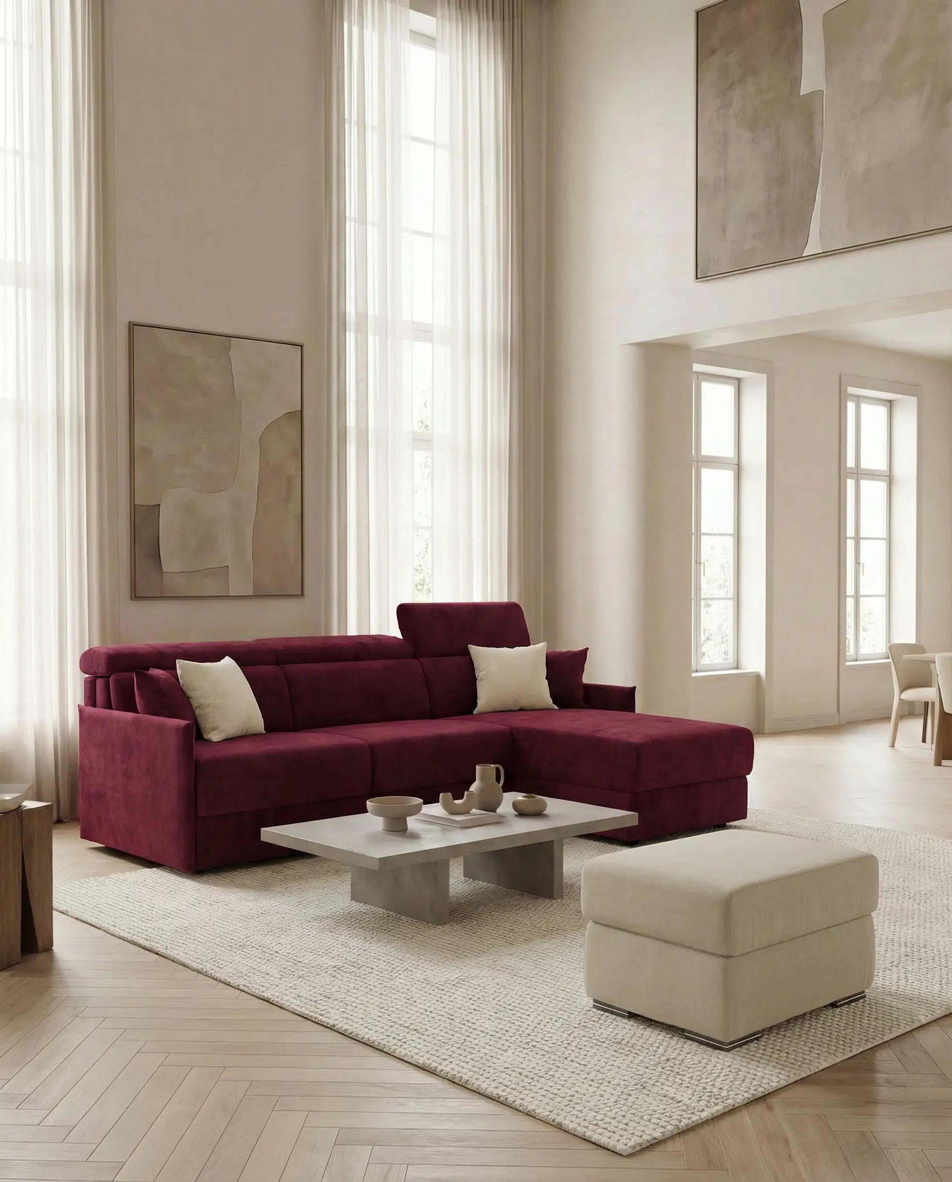 Canapé convertible d'angle compact - têtières inclinables et méridienne coffre en tissu détachable T31