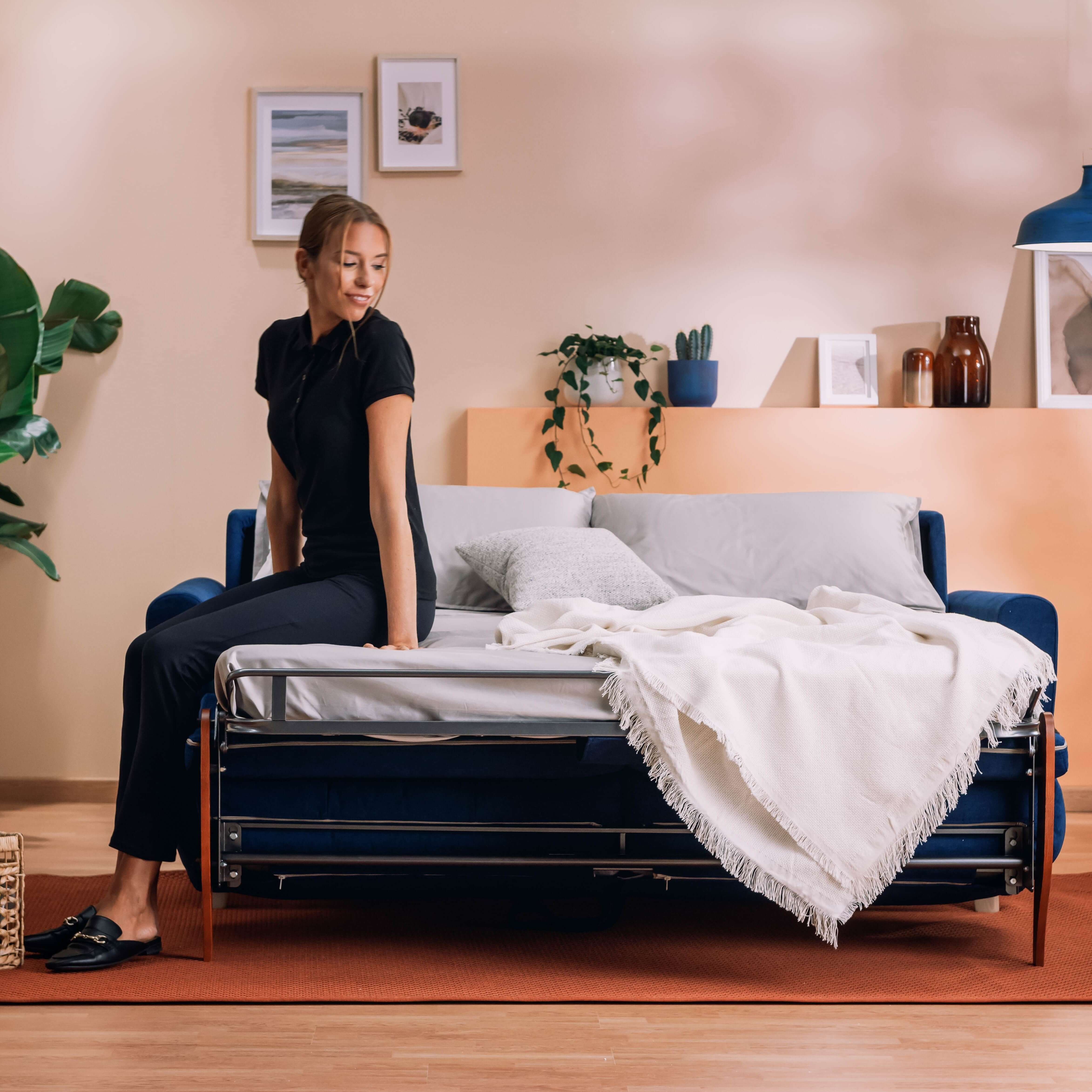 Divano letto matrimoniale con materasso 20 cm in tessuto impermeabile T03 blu