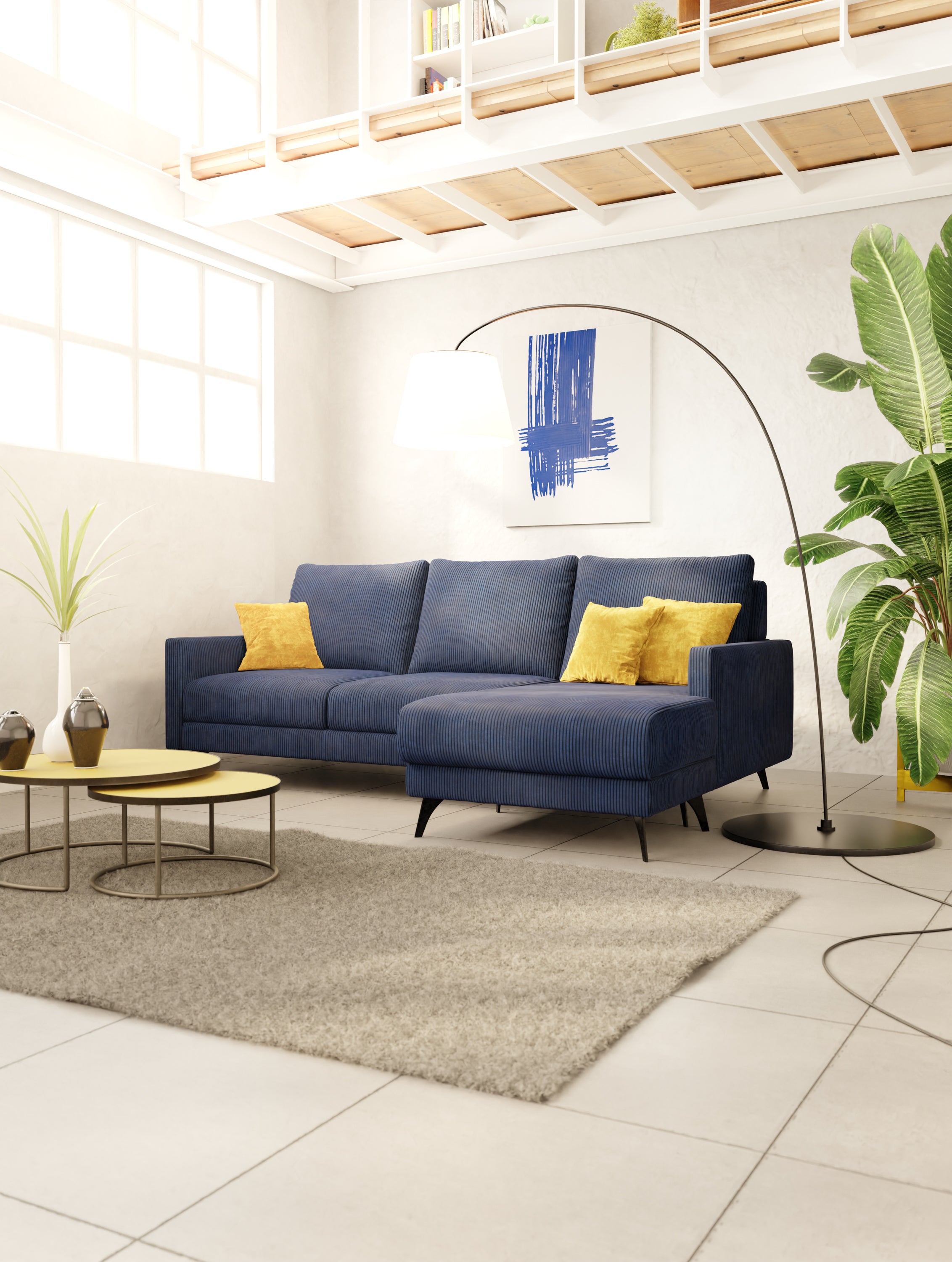 Si vous souhaitez que votre canapé d'angle coloré devienne la star du salon, optez pour des tissus aux textures particulières ou aux détails contrastés.