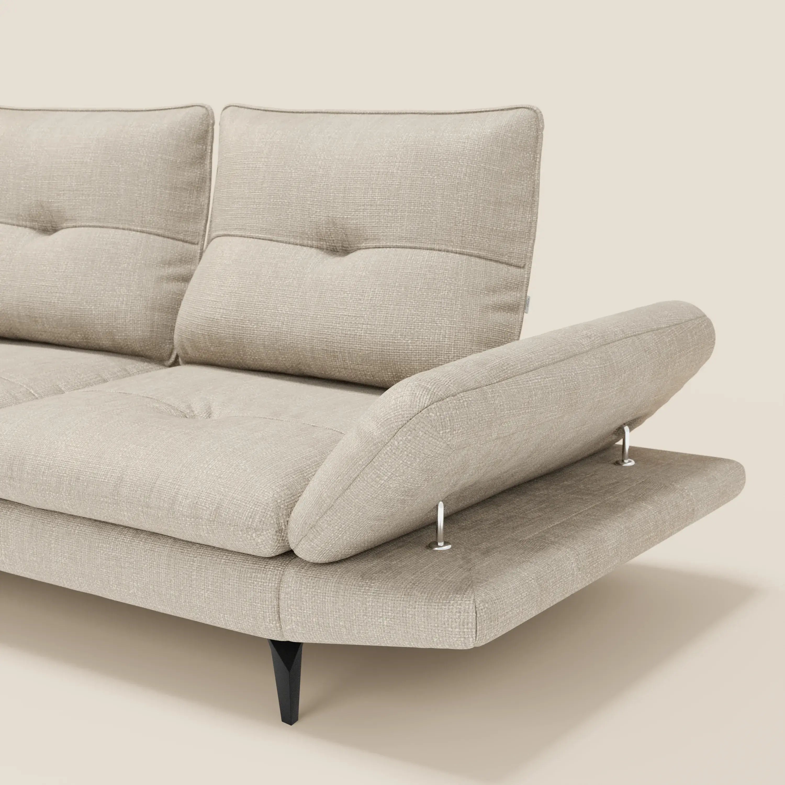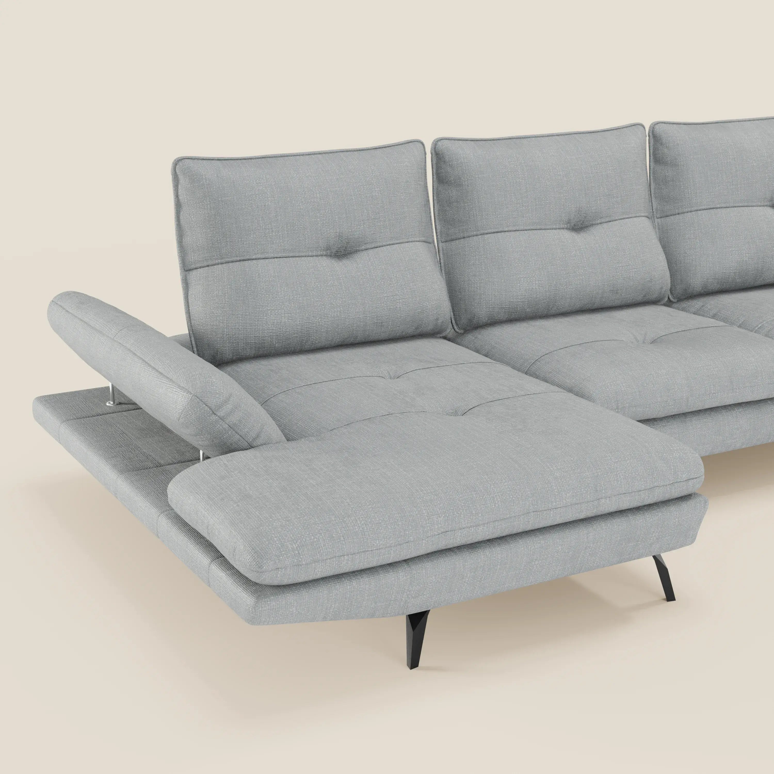 Canapé avec méridienne - dossiers coulissants et accoudoirs réglables en élégant tissu imperméable T06 bleu glacier