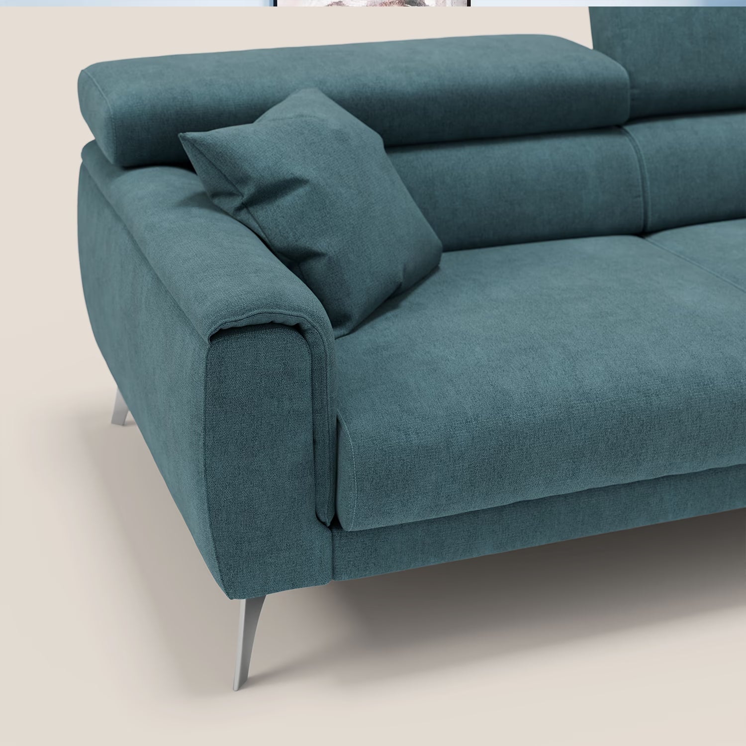 Caravaggio allie confort et soutien ergonomique, grâce à ses assises à double densité avec cellules à mémoire de forme et à ses têtières réglables en 30 positions. Les coussins cale-reins ergonomiques du dossier offrent un soutien optimal à la zone lombaire, ce qui rend ce canapé idéal aussi bien pour se détendre que pour travailler ou lire