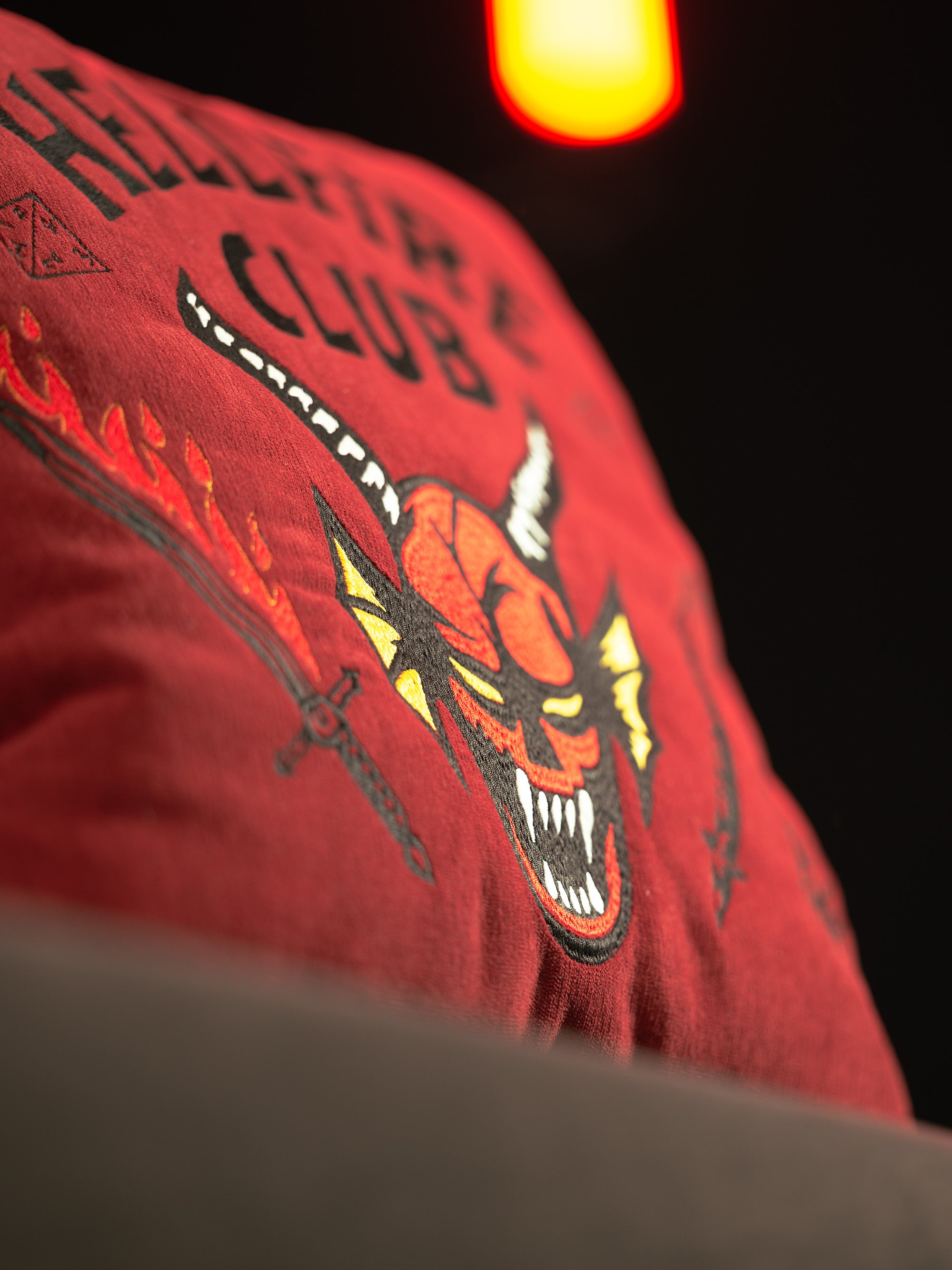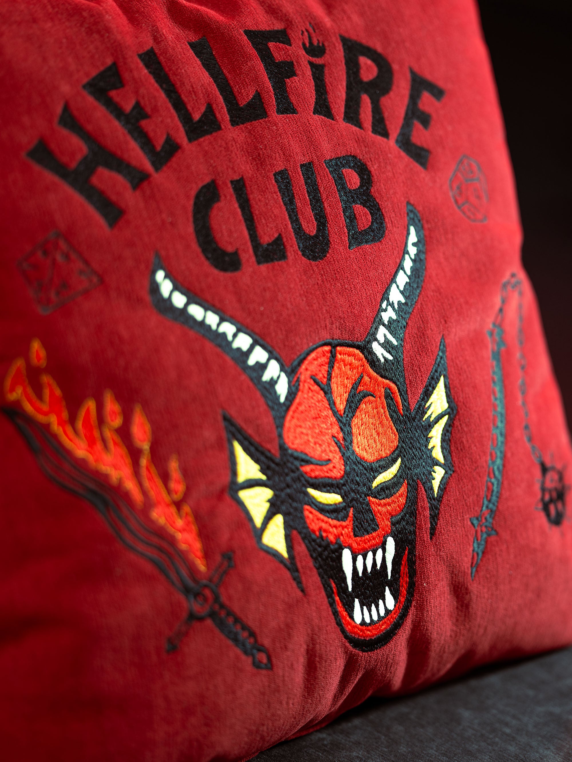 Directement issu de l'univers de Stranger Things et de la collaboration officielle entre Netflix et Divani.store, le coussin Hellfire Club – Édition limitée rend hommage au club le plus mythique de la série et aux fans qui en partagent l'esprit.