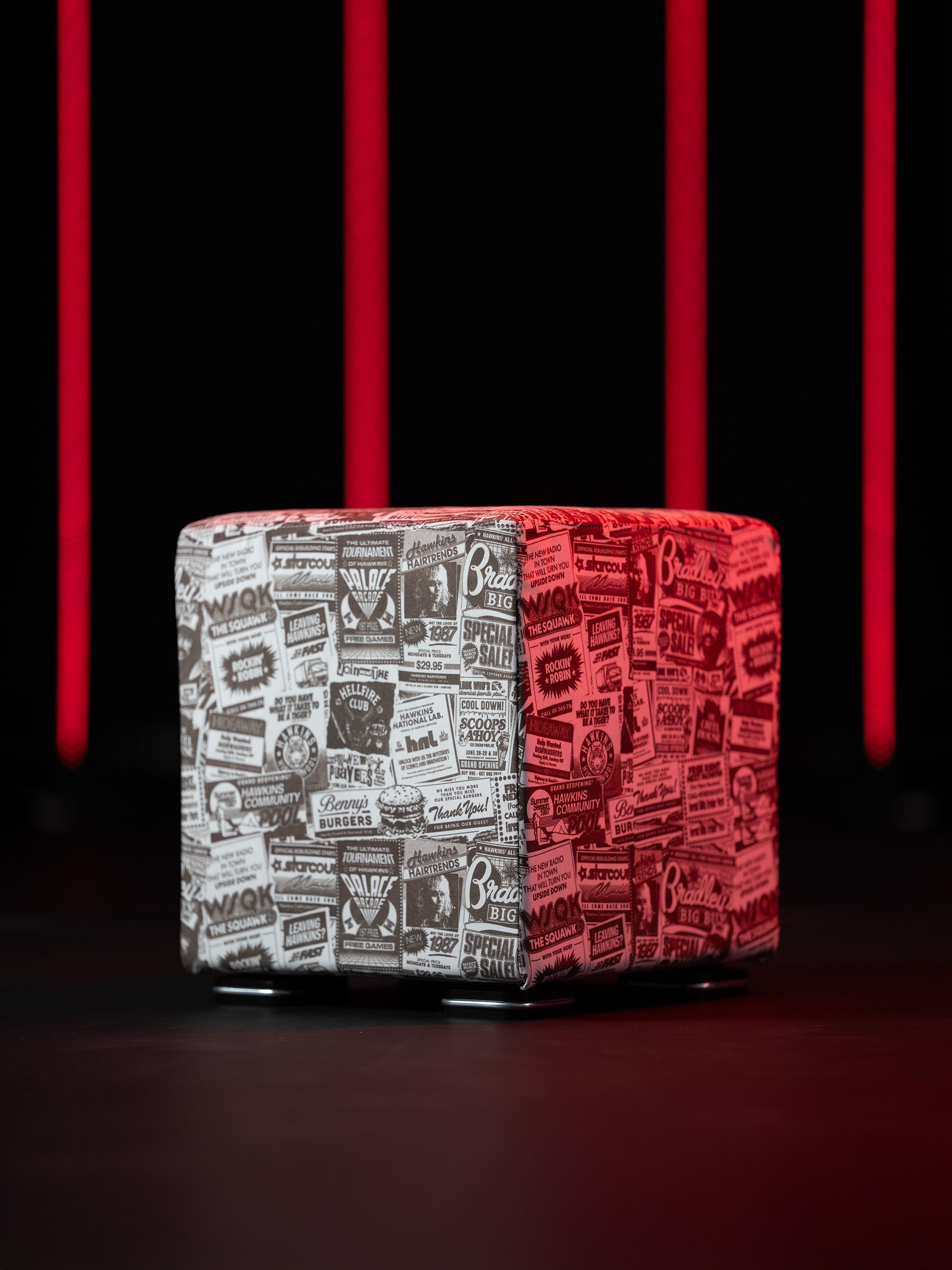 Compact, fonctionnel et profondément évocateur, le pouf Cube Hawkins Post - Édition limitée est un hommage à la narration et à l'esthétique de Stranger Things : un petit meuble qui apporte au quotidien le goût de l'histoire, du graphisme et du design.