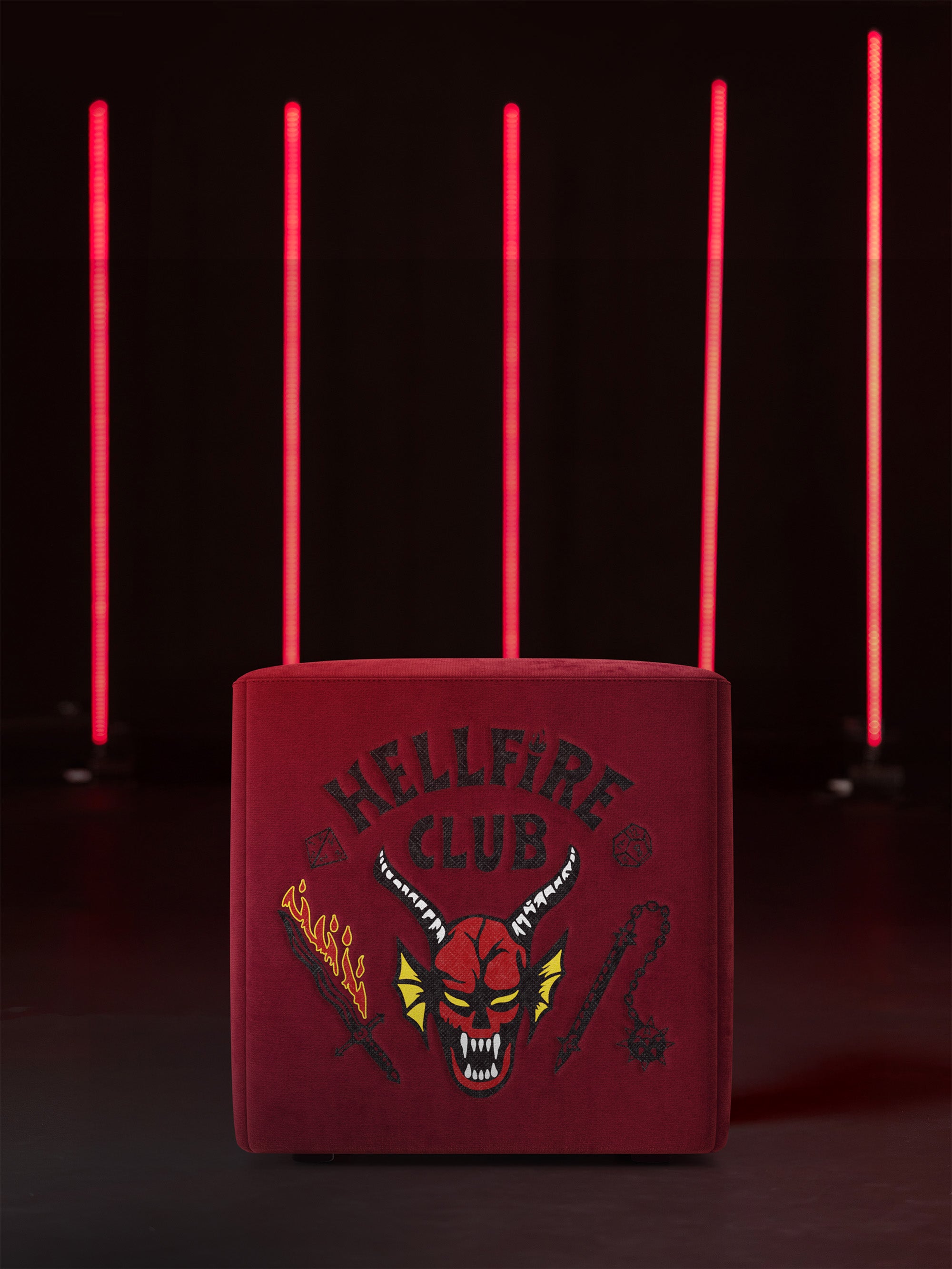 De la collaboration officielle entre Netflix et Divani.store naît le pouf Cube Hellfire Club – Stranger Things Édition Limitée, un hommage au club le plus légendaire de Hawkins.
