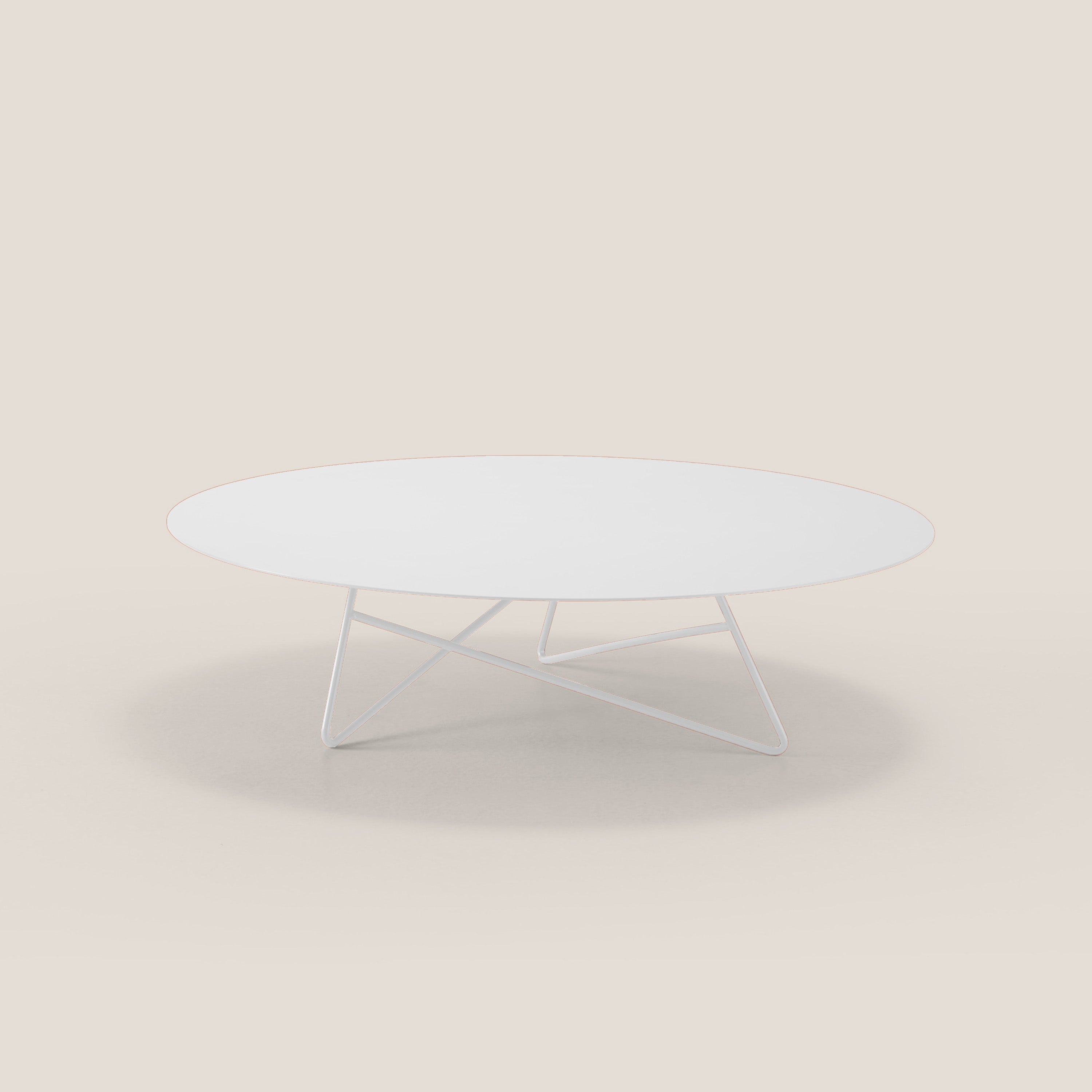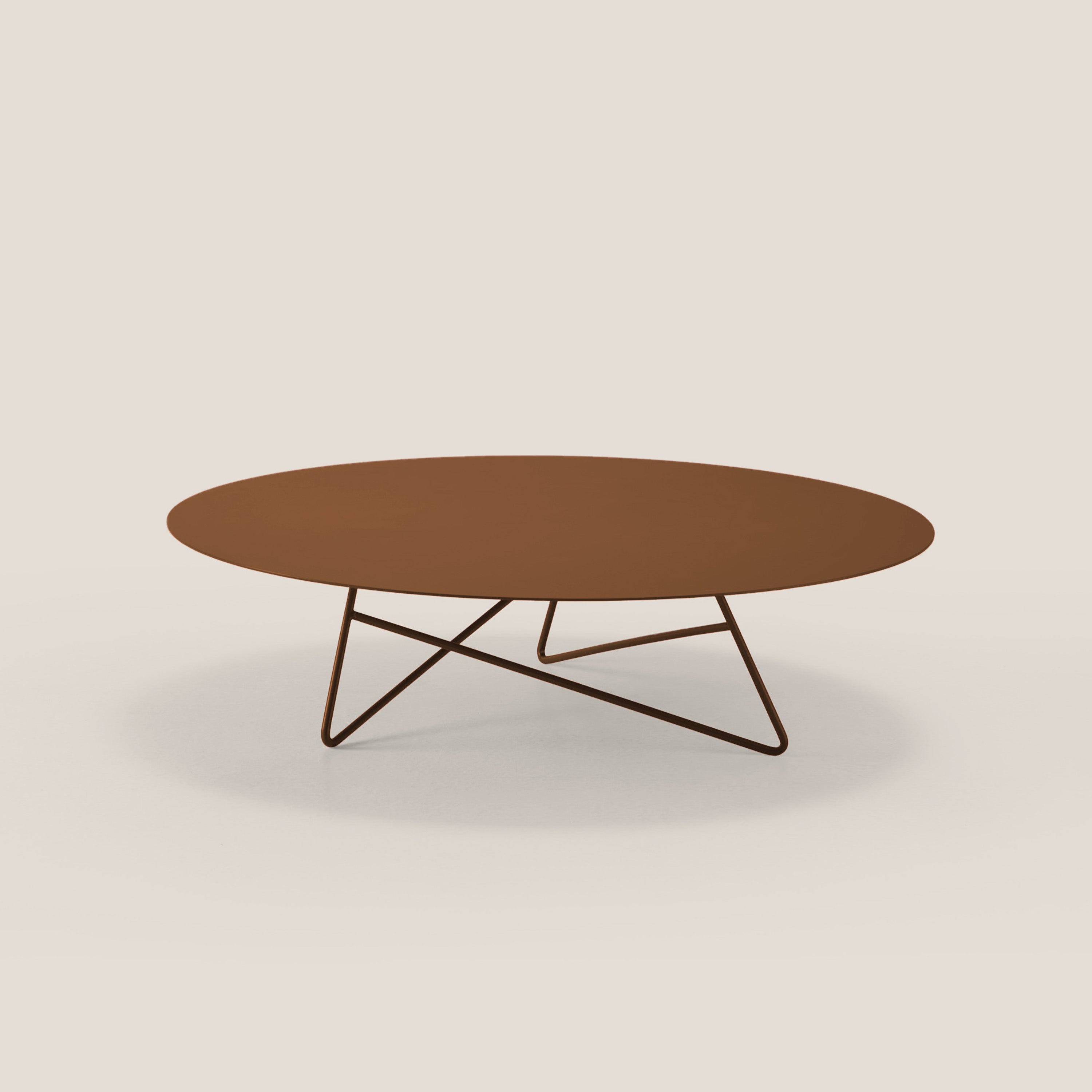 Ermione est une table basse ronde en métal pour le salon. Un design robuste et élégant, avec une structure légère et solide qui s'enroule circulairement à l'infini. Dotée d'un plateau en acier disponible en 15 couleurs et de 2 finitions métalliques raffinées, or et cuivre, pour un look sophistiqué et exclusif. Un choix élégant qui met en valeur n'importe quel décor.