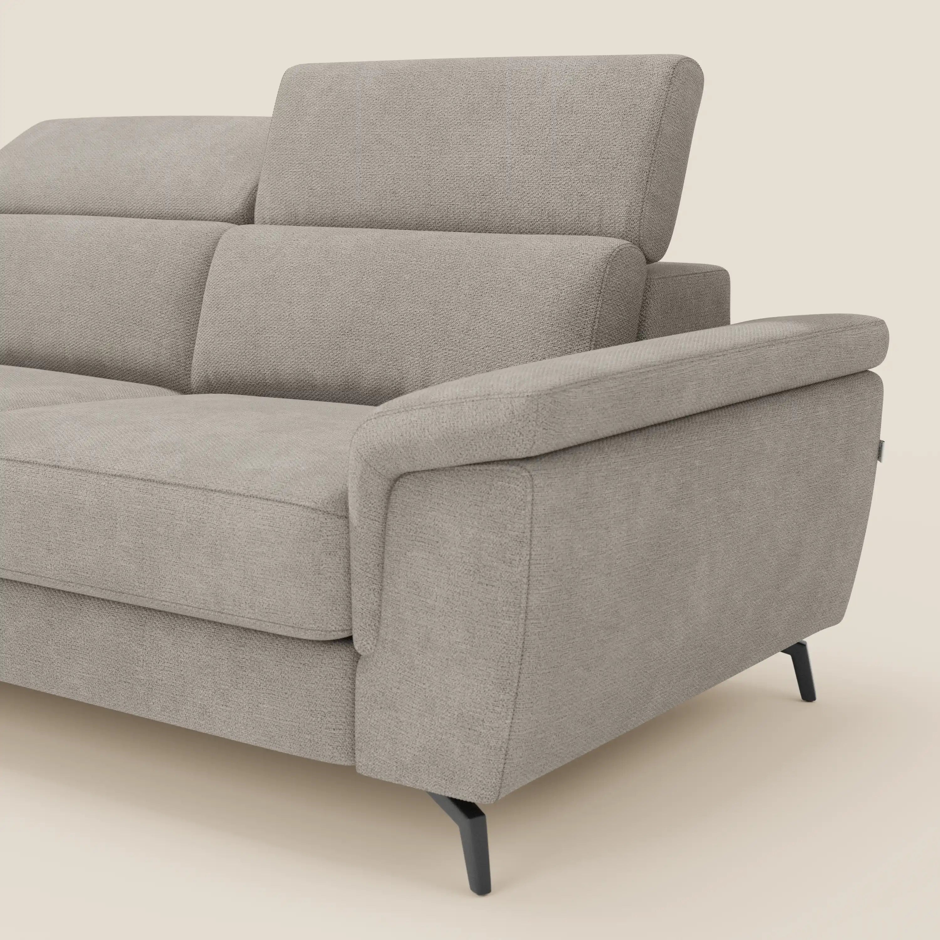 Le cœur du confort ? L'assise extractible avec roulettes anti-rayures et pieds escamotables, prête à se transformer en chaise longue extra-profonde quand vous le souhaitez disponible en option. Le tissu technique effet chenille avec traitement hydrofuge rend Estro non seulement élégant mais aussi pratique, tandis que les têtières inclinables et les accoudoirs rembourrés définissent un design raffiné, pensé pour ceux qui veulent tout, sans compromis.
