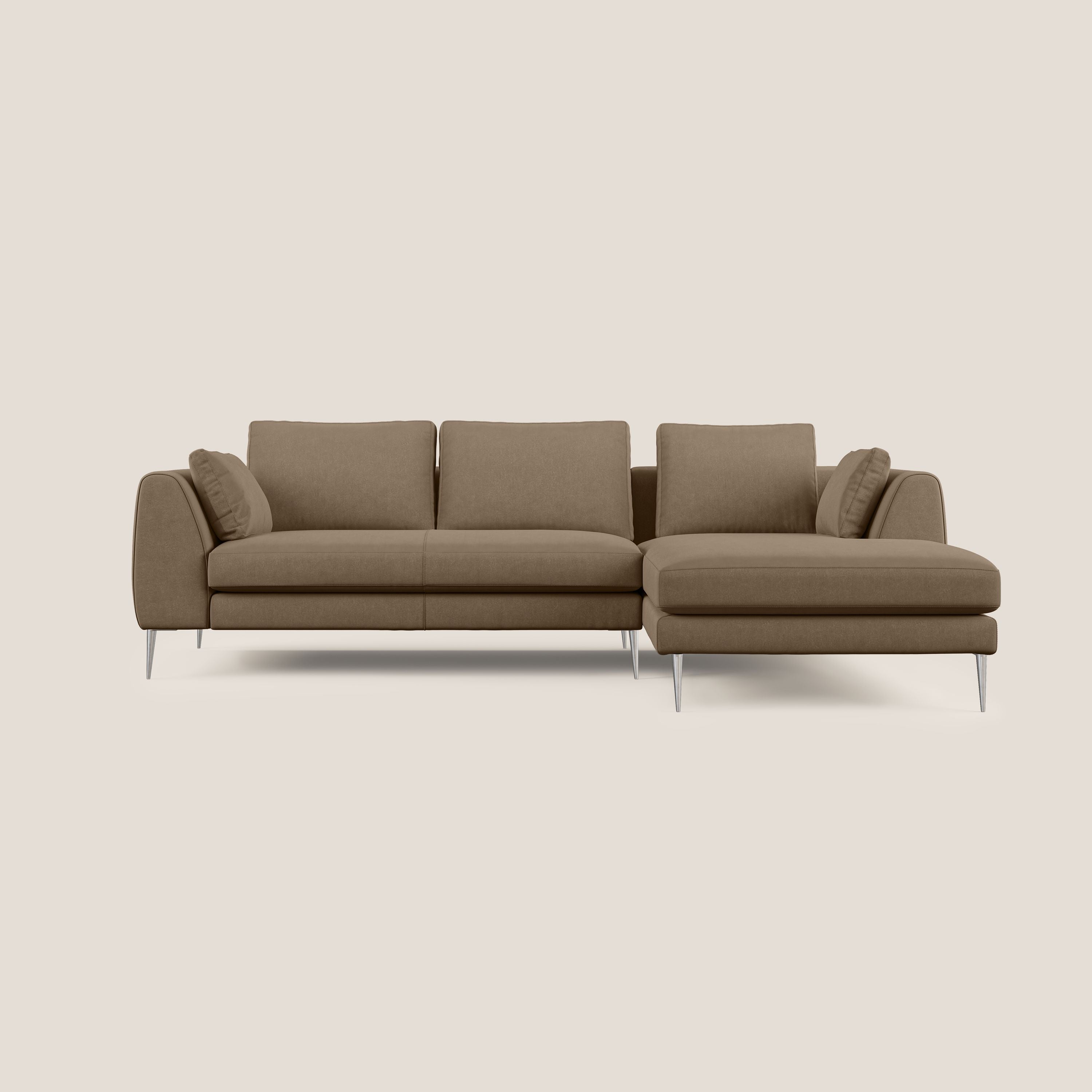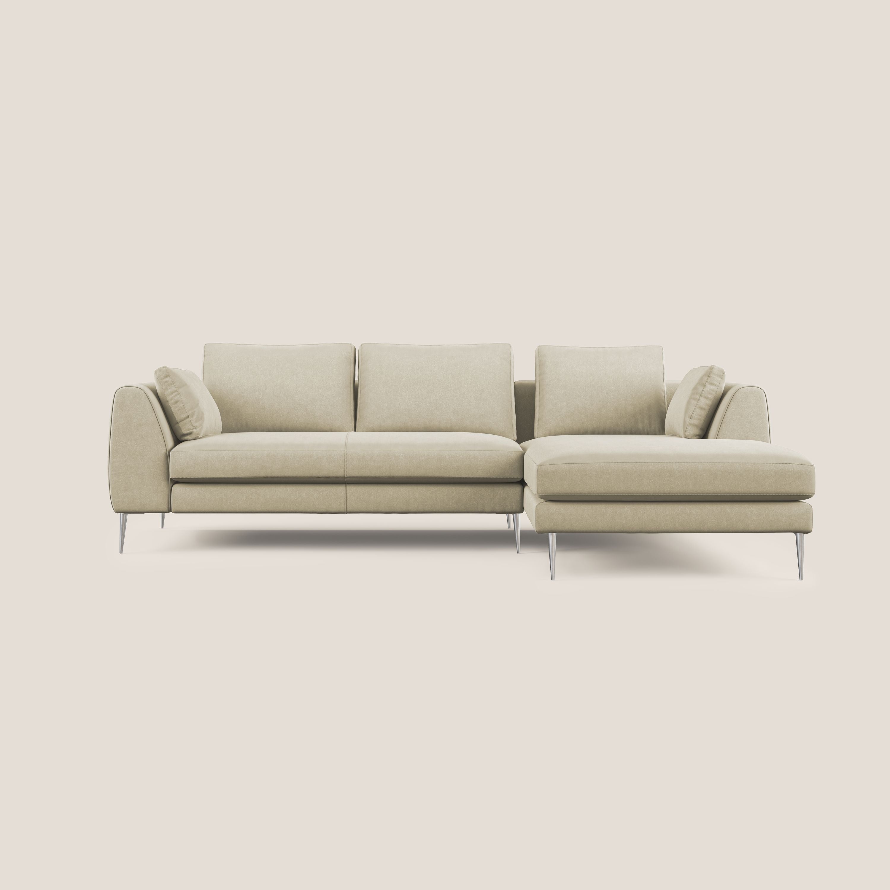 Canapé d’angle au style minimal et moderne en microfibre, avec pieds en acier chromé de 14cm de hauteur. Le canapé PLANO avec méridienne est disponible dans 10 coloris et différentes mesures afin de s’adapter à chaque exigence d’espace et de design.