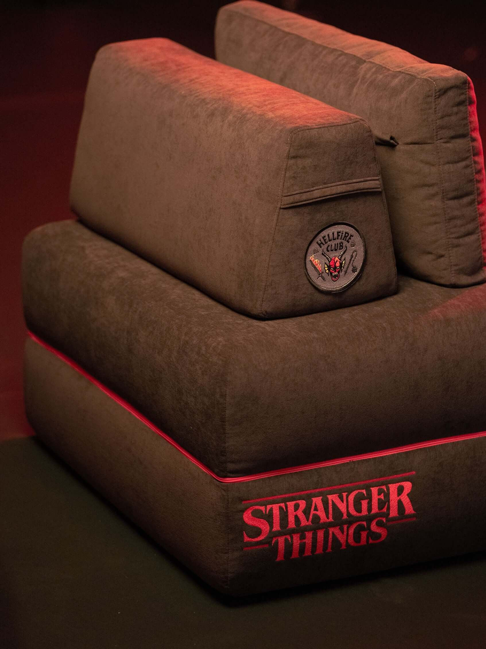 Comme chaque pièce de la collection Stranger Things Edition, le fauteuil-lit est soigné dans les moindres détails : le logo « Stranger Things » brodé sur le devant, l'écusson Hellfire Club sur le côté et l'intérieur matelassé avec un imprimé thématique évoquent l'atmosphère de la série, faisant de chaque transformation un petit voyage dans l'Envers.