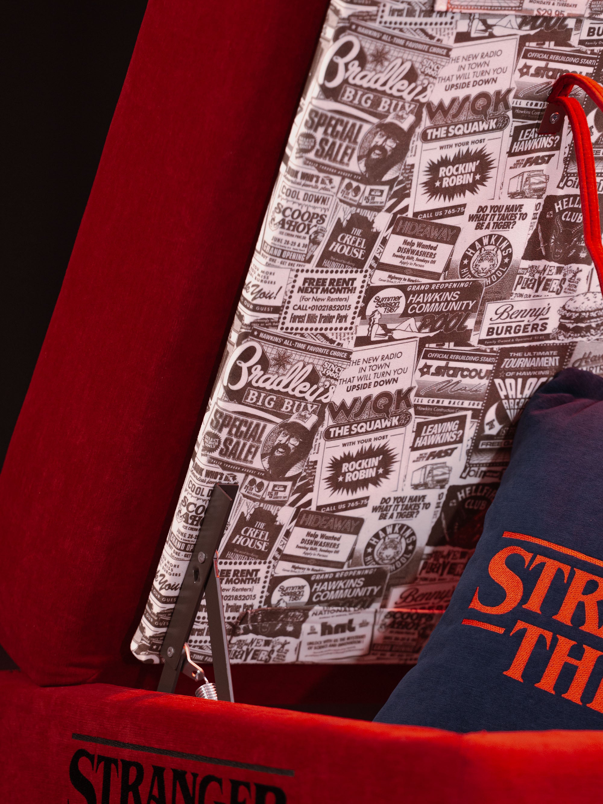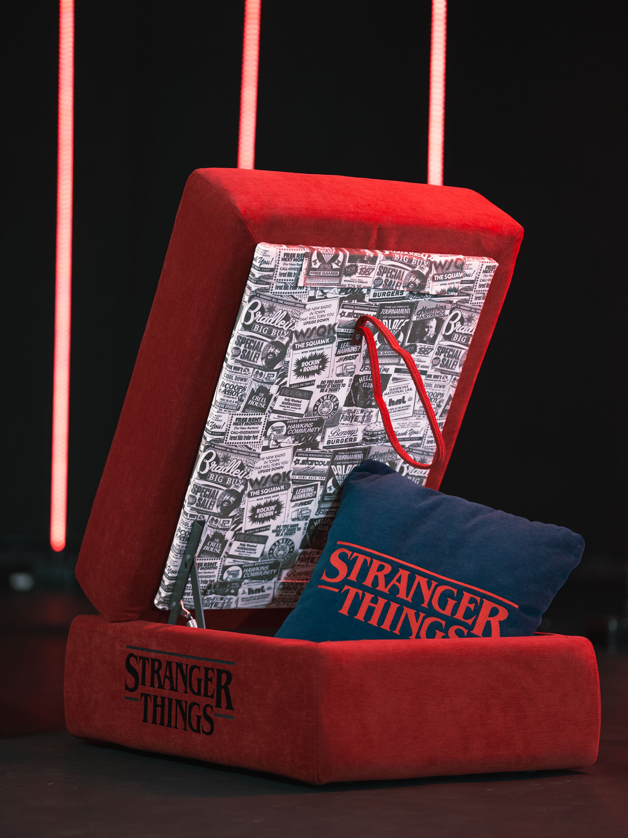 Le logo « Stranger Things » brodé sur le côté est la marque distinctive de cette édition spéciale, disponible en trois couleurs — rouge, bleu et noir anthracite — pour s'adapter à tous les intérieurs, du salon contemporain à la chambre à coucher. Chaque version est entièrement déhoussable et réalisée avec des tissus techniques de haute qualité, doux au toucher, résistants et faciles à nettoyer.