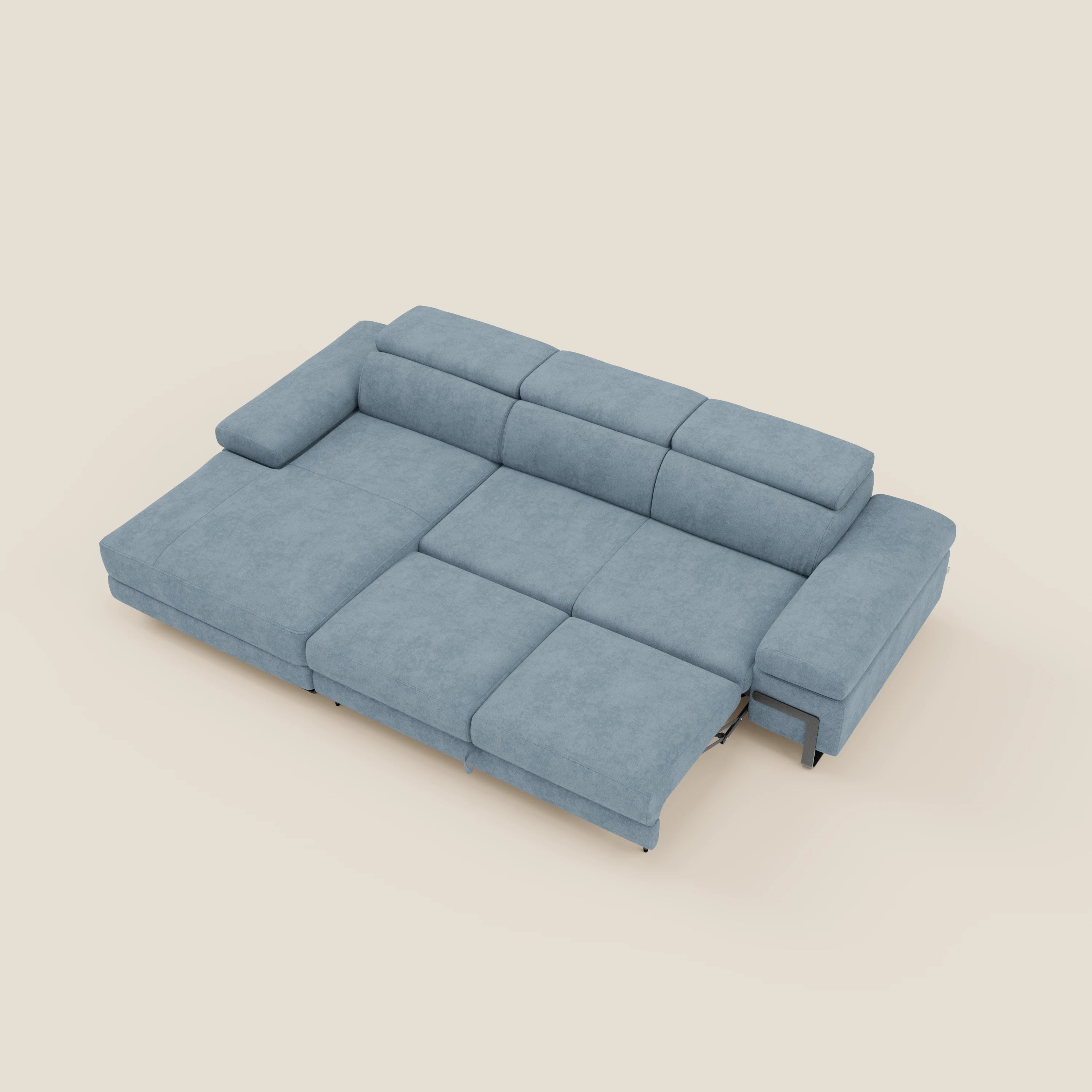 ZAYANA est le canapé relax conçu pour ceux qui recherchent un confort évolué et un design contemporain. Doté d'un mécanisme relax manuel intégré dans l'assise, il offre une extension fluide qui transforme chaque assise en chaise longue. Les têtières inclinables et les accoudoirs réglables permettent de trouver la position idéale pour se détendre, lire ou simplement s'allonger, offrant un soutien idéal pour la tête.